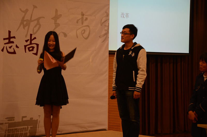 1125日下午,管理学院在延安路校区举办了第二届党情国情——“一站到底”知识竞赛。上海建桥学院应邀组队参与活动,与管理学院学生党员们开展了一场别开生面的比赛。来自我校管理学院的13名学生党员和入党积极分子展开了激烈的角逐。作为首个攻擂者,我校管理学院旅游管理专业沈嘉斌同学表现不俗,在1VS1淘汰赛中连续战胜6位挑战者,虽然在与第7位挑战者的较量中失利,但还是赢得了现场观众热烈的掌声。淘汰赛之后,我校管理学院和上海建桥学院各派两位同学进入“车轮战”比赛,来自上海建桥学院的范晨同学力压其他三位选手,成功进入“精选五道题”环节。可惜,最后闯关没有成功,与“战神”称号失之交臂。经过现场嘉宾投票,范晨同学和沈嘉斌同学荣获了本场比赛的“最具风采奖”。