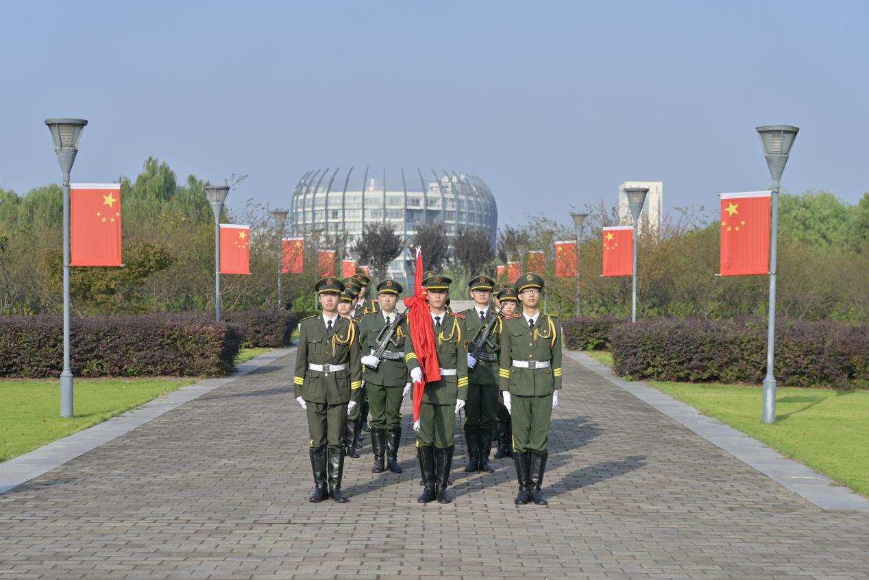 伴着晨光,校国旗护卫队队员英姿飒爽,踏着矫健的步伐,护送着国旗来到旗台下。东华全体师生代表相聚国旗下,共同见证这一庄严的时刻。
