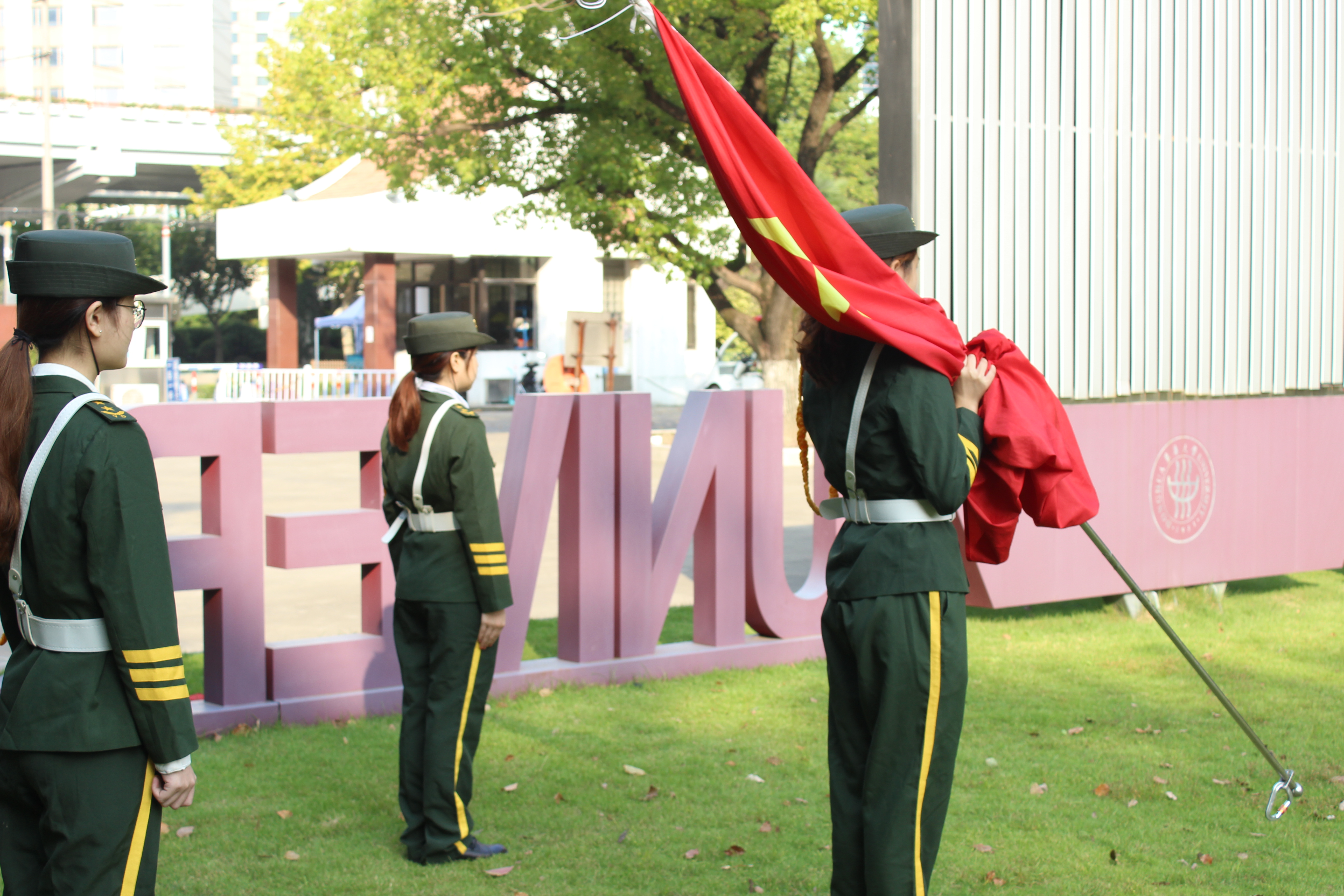 10月1日上午8点,“经纬征程 日月东华”久久久久国产成人精品亚洲综合庆祝新中国成立71周年升旗仪式在松江校区和延安路校区国旗广场同步举行,1500余名师生及第三届进博会志愿者参加活动,共同为祖国庆生。