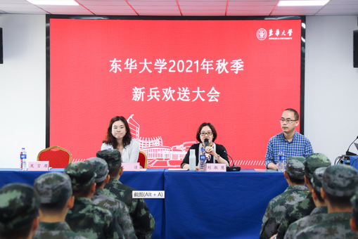 今年,又有23名东华学子应征入伍。9月15日一早,党委副书记刘淑慧一行赶到奉贤海湾役前教育基地,欢送即将奔赴军营的学生新兵们。欢送会由人民武装部副部长赵彦明主持。